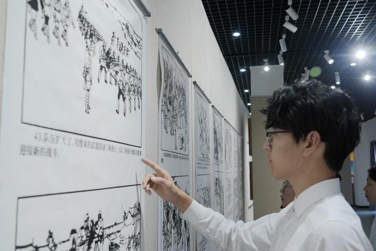 在临时展厅,学生们共同观看了“笔绘燎原·八十载焰续新章——《平原烈火》红色连环画主题展”。正值中国人民抗日战争暨世界反法西斯战争胜利80周年之际,一幅幅生动的连环画画面再现了烽火硝烟中的震撼场景,学生们通过直观的艺术呈现缅怀革命历史、铭记英雄事迹,大家纷纷表示此次参观非常震撼。