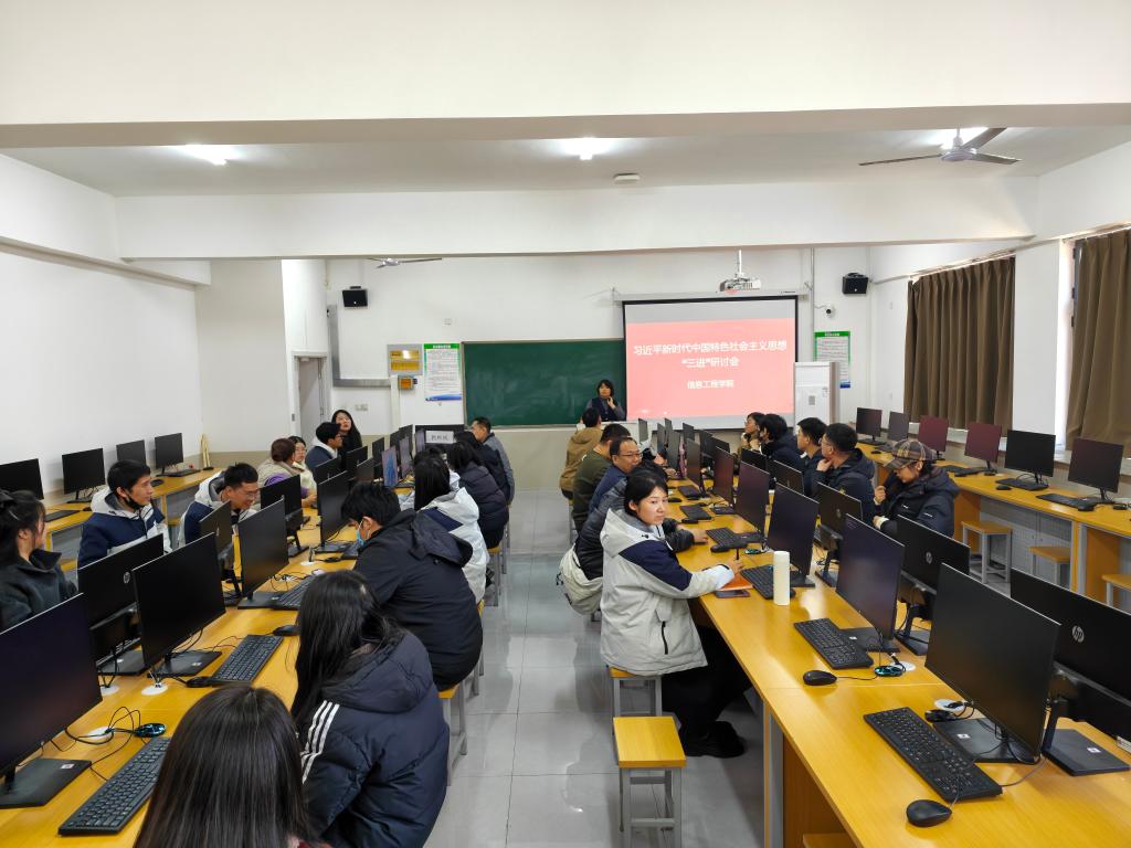 切实推动习近平新时代中国特色社会主义思想进教材、进课堂、进头脑,11月12日14:00-16:00,信息工程学院在C603开展专题教研活动,聚焦“三进”工作的落实方案展开深入研讨,全体教师参会。