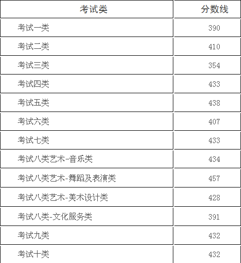 (一)面向普通高中毕业生各考试类录取控制分数线
