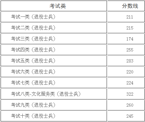 (三)面向退役士兵各考试类录取控制分数线